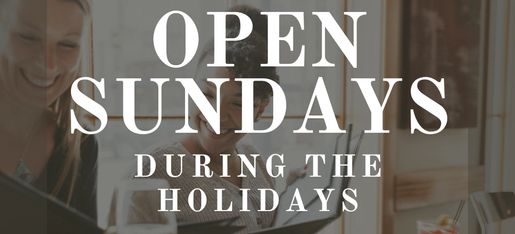 For the rest of the year, we're open Sundays for dinner from 3-8 pm.